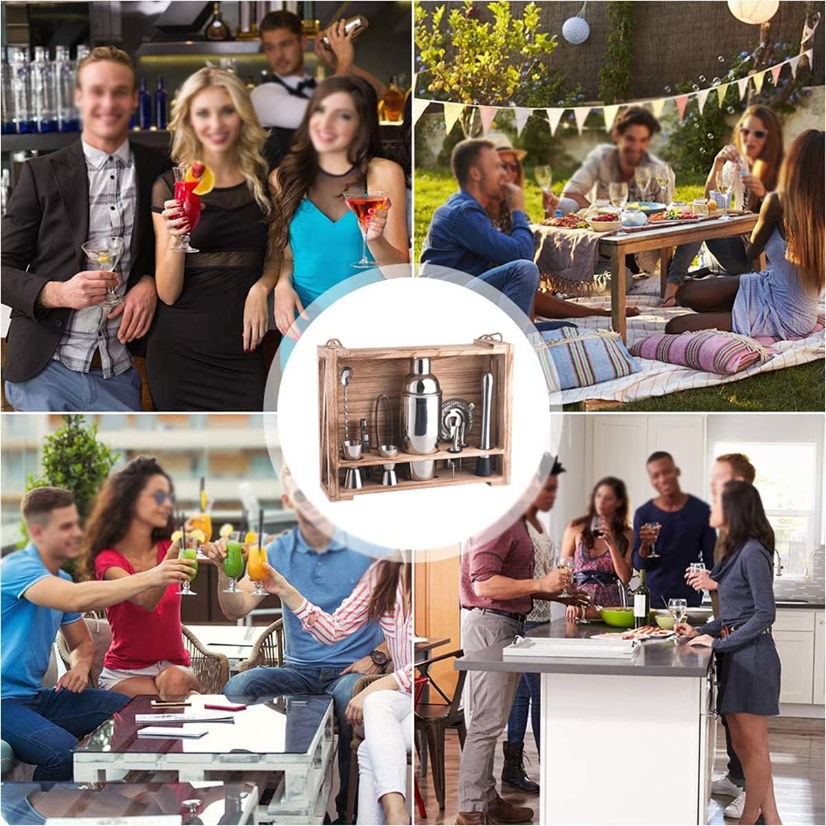 WHY COCKTAIL MAKING SET? ? The cocktail set was designed for professional and home use, being the ideal accessory for outstanding drink mixing results! ? Made with premium stainless steel, with 11 essential tools included and a rustic wooden stand for gorgeous display taking your home decor to another level. ? This bartender kit is perfect for every veritable connoisseur or for those of you who t to master this art! ? Perfect gift for Birthdays, Christmas, New Year, Valentines, Mothers day etc. Amazing features of this product: Rustproof food grade stainless steel material; Rustic wall stand for safe and practical storage; For professional and home use; Ideal for mixing all sorts of cocktails and beverages; Package Contents: Shaker x1 Bar spoon x1 Broken Popsicle x1 Filter x1 Measuring cup x2 Diversion nozzle x2 Ice clip x1 Seahorse knife x1 Wooden frame x1