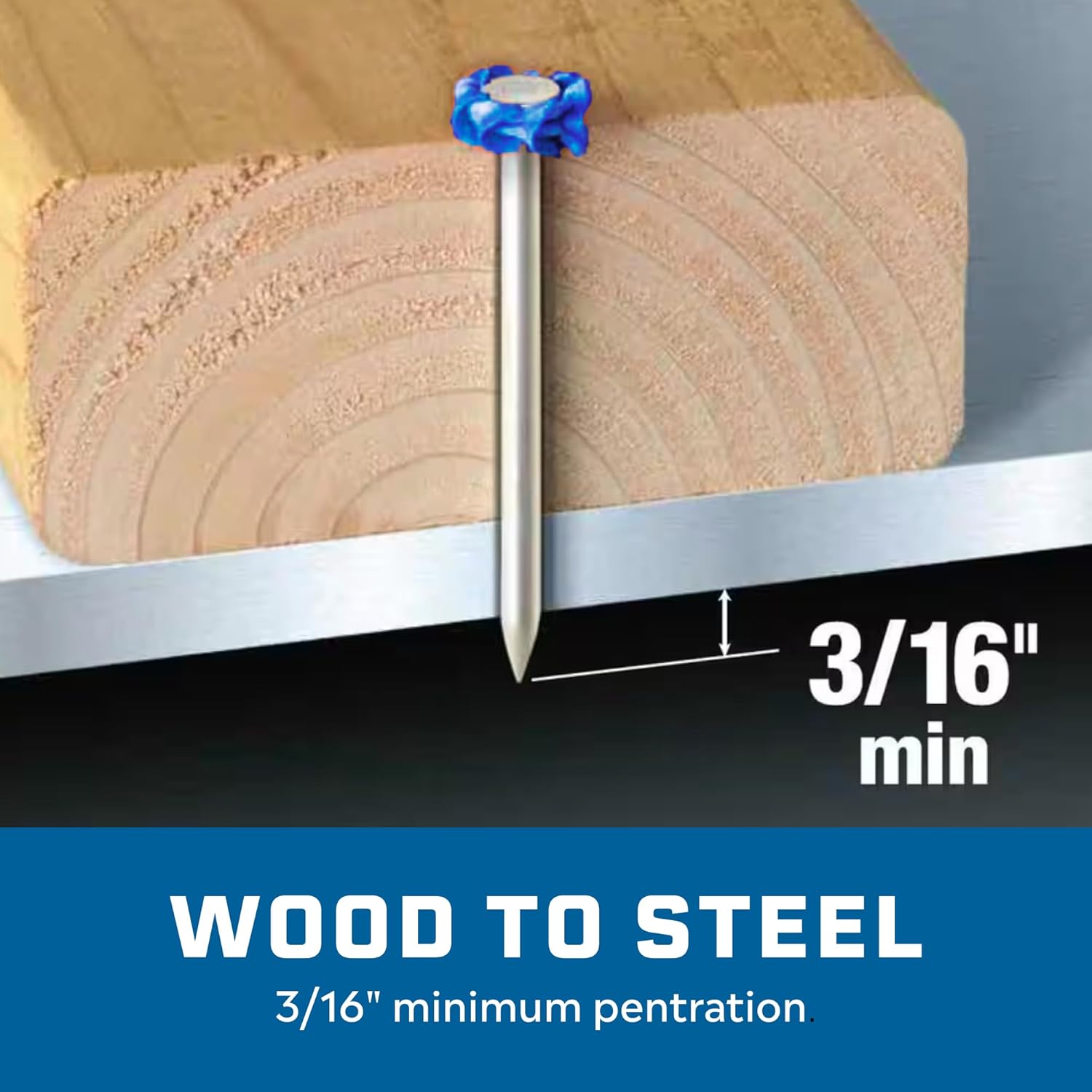 Tapcon Powder Actuated Pins are engineered for fastening into concrete and steel. Available in 1/2" to 3" sizes with washer or non-washer configurations. Pins with integrated washers increase bearing surface and load distribution, preventing material deformation and maximizing holding power. Non-washer pins provide flush installations for applications requiring a clean finish. Made in USA with consistent quality and reliability, ensuring compatibility with all Tapcon Powder Actuated Tools.